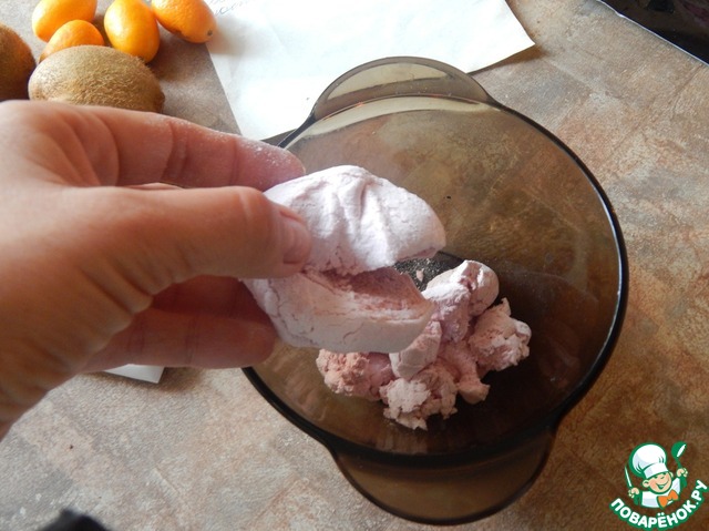 Соединяем сливки и зефир, хорошо вымешиваем массу