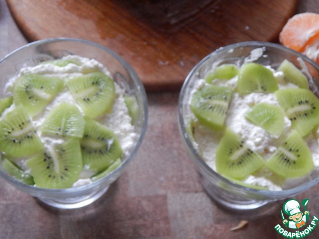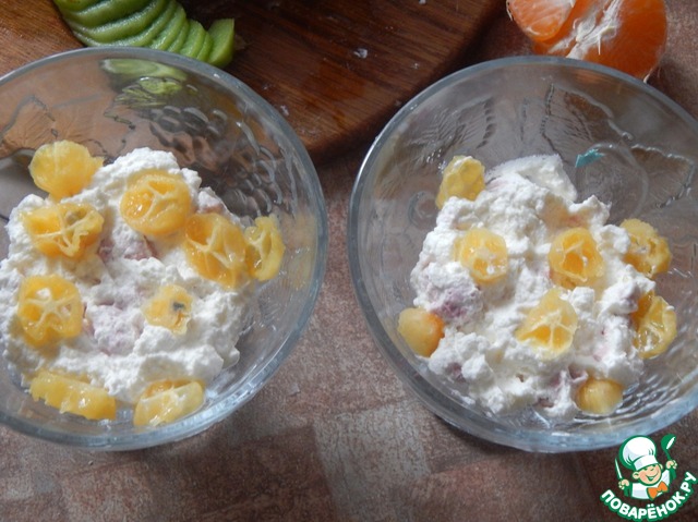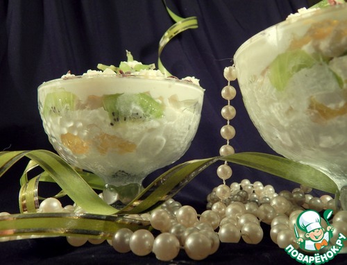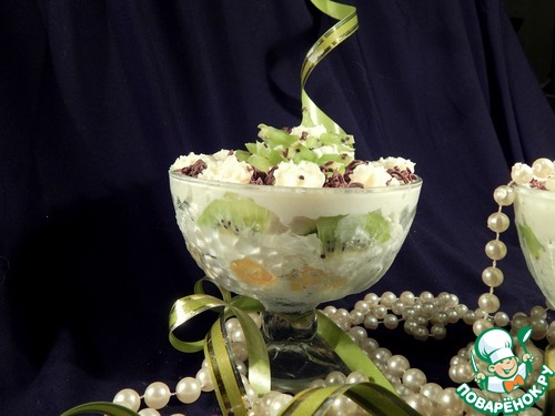 | Неимоверно простой и элементарный, но при этом не надоедающий нежный десерт! Порадуйте своих мужчин быстрым и вкусным сюрпризом ни праздник! Фрукты можно менять по своему желанию, или ориентироваться на вкус любимого! |