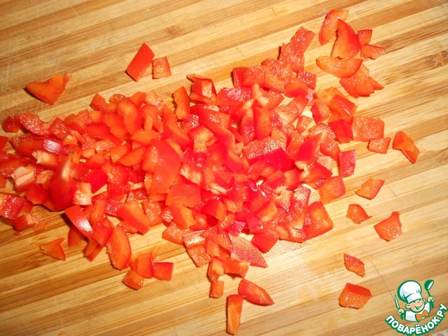 Сладкий перец очистить и нарезать мелкими кубиками.