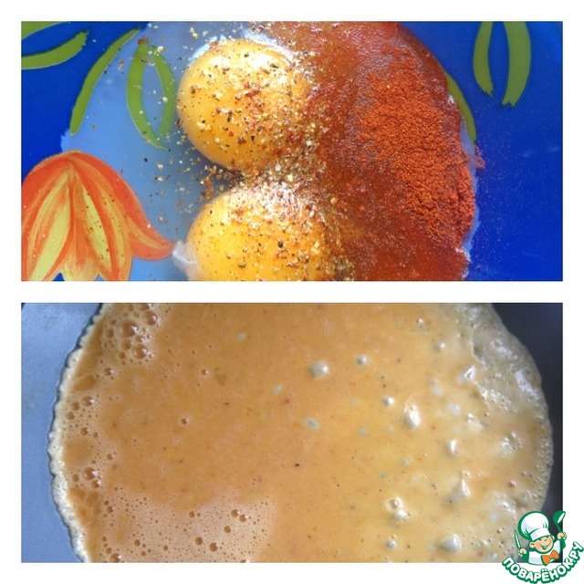 Яйца взбить с щепоткой соли, перца и паприки. На хорошо разогретой сковороде смазанной растительном масле поджарить блин...