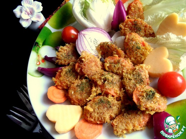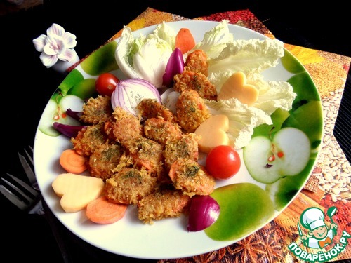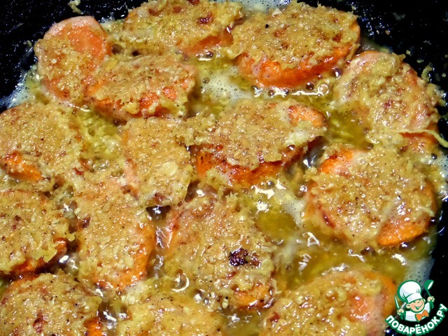 Переносим из панировки в раскалённое растительное масло все кусочки.