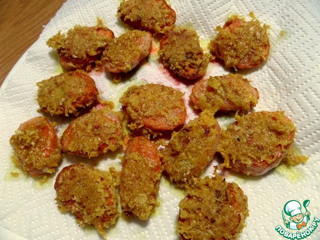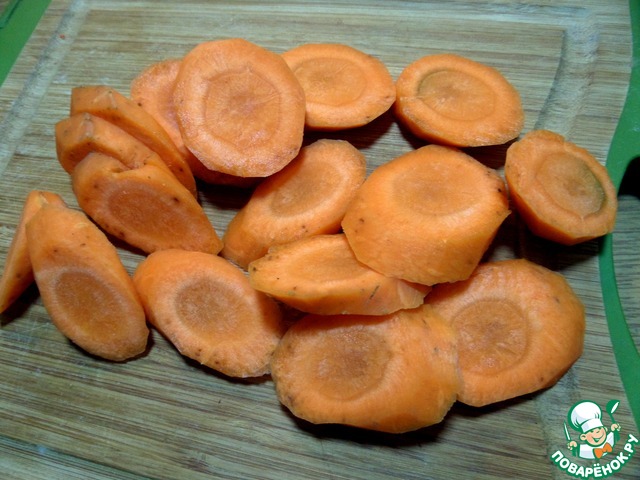 Нужна толстая сочная морковка, моя весила 120 г. Очищаем, нарезаем на толстые колечки.