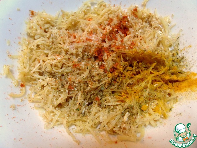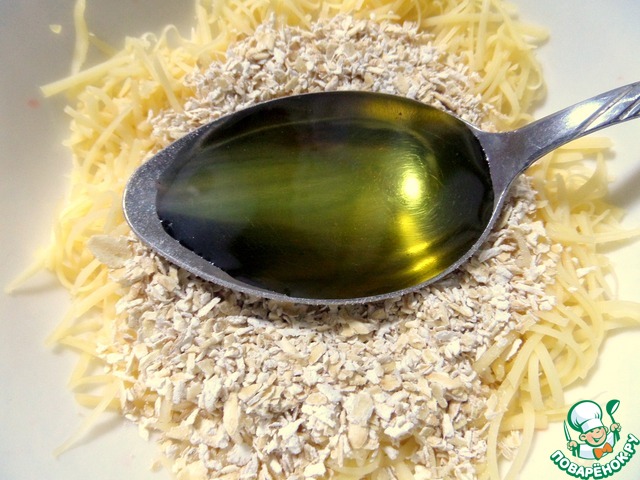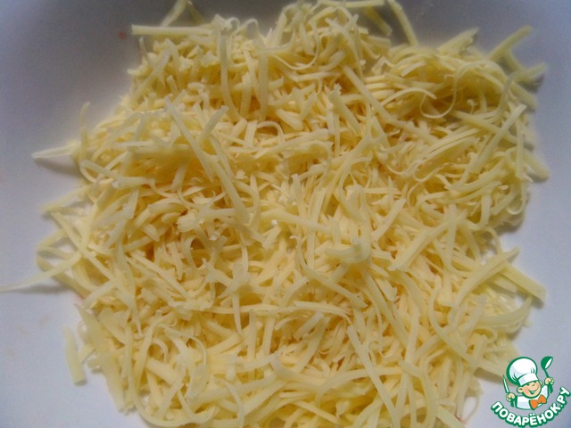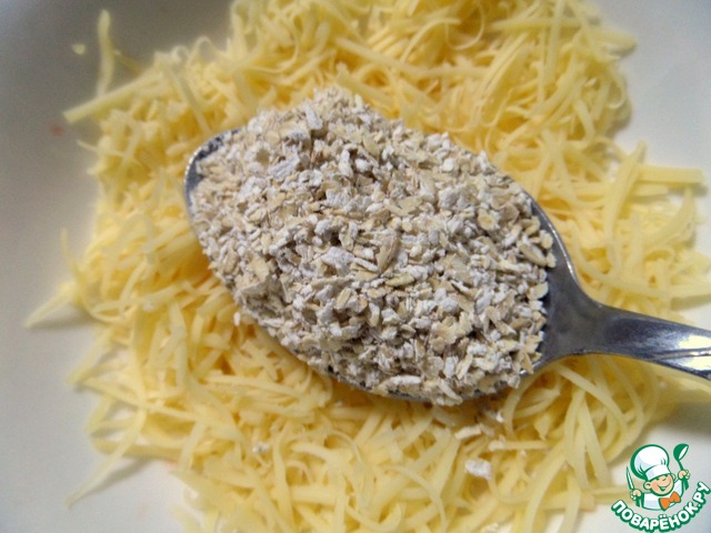 Делаем панировку: сыр натираем на мелкой тёрке. У меня Маасдам, но его нет в программе.