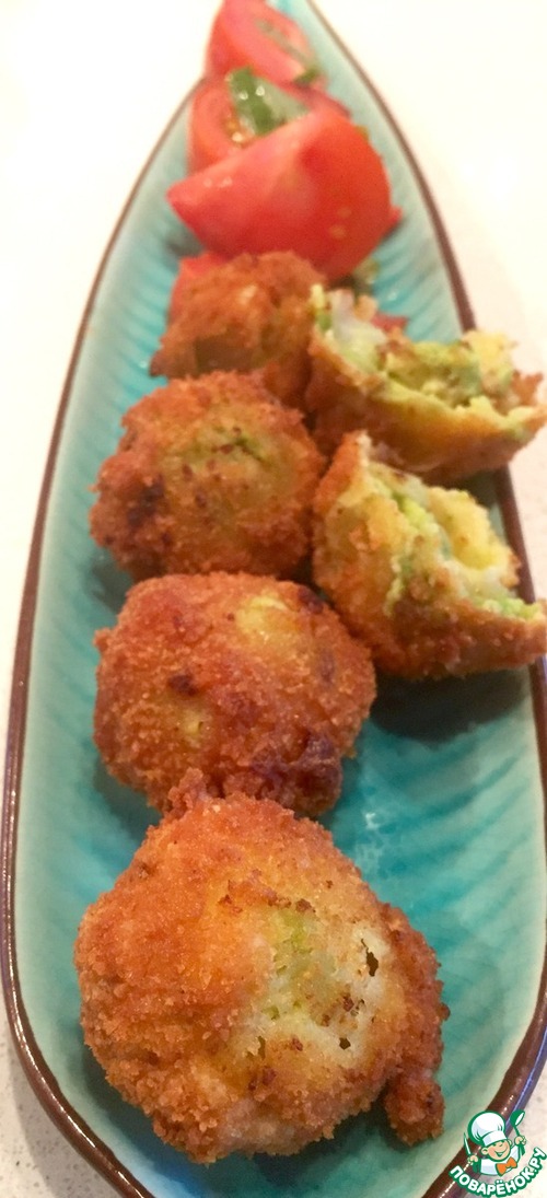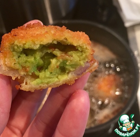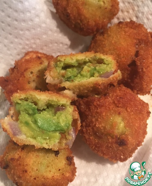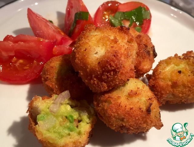 Вот и все дела. Снаружи получается хрустящая корочка, а внутри лук становится мягким. Авокадо с томатом внутри здорово сочетается с горячей хрустящей корочкой. Прекрасная закуска или обед с бокалом вина.