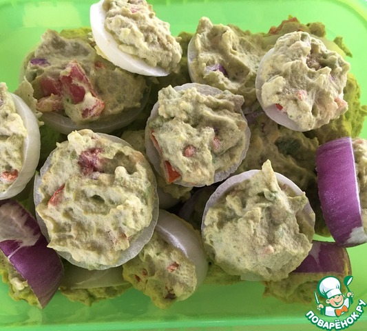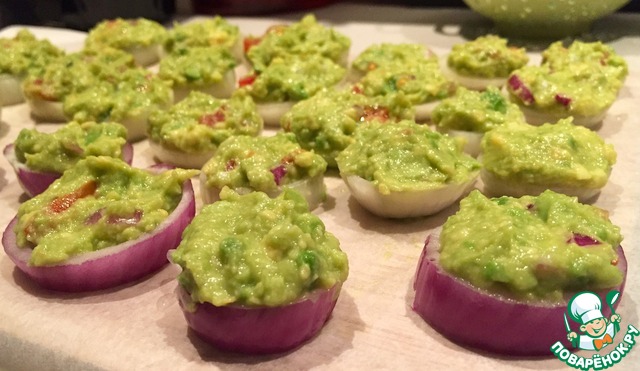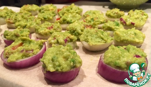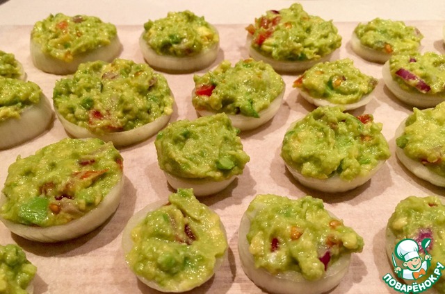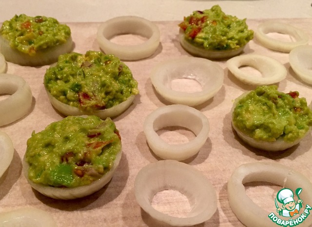 Возьмите ложку и положите в каждое колечко гуакомоле. Вот так.