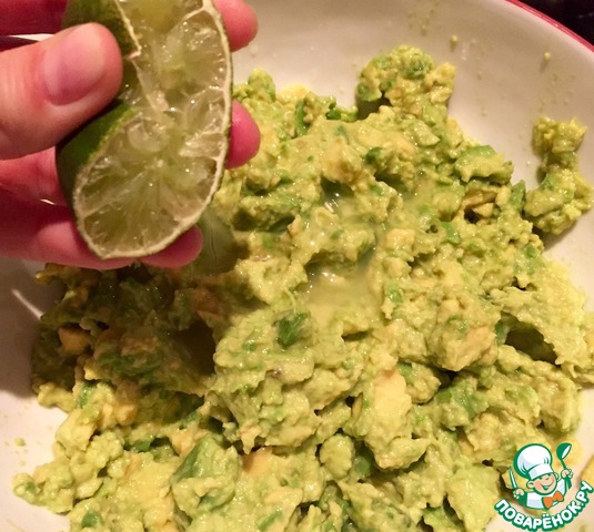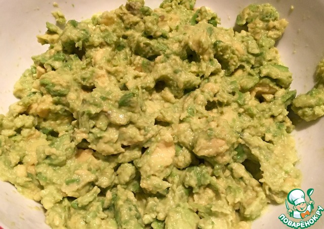 Сначала нужно сделать гуакамоле. Разомните авокадо вилкой.