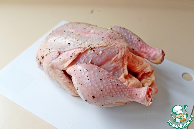 Смазать этой смесью курицу, выложить птицу в пакет для запекания
