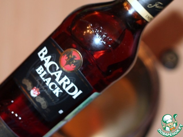 6. Чистый сироп доводим до кипения, вливаем ром (100 -125 мл) и снова даём закипеть.