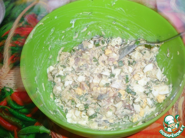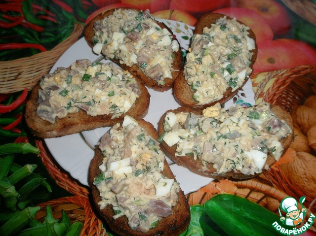| Закуска из сельди и варёных яиц на хрустящем сливочном хлебе. Не надо путать с форшмаком! Вчера купила сельдь и много думала, что же такое с неё приготовить... Шуба надоела, саму по себе недавно ели.. Пошарив по холодильнике, "изобрела" такое чудо. Всем очень пришлось по вкусу. Однозначно буду готовить ещё! Угощайтесь! |
