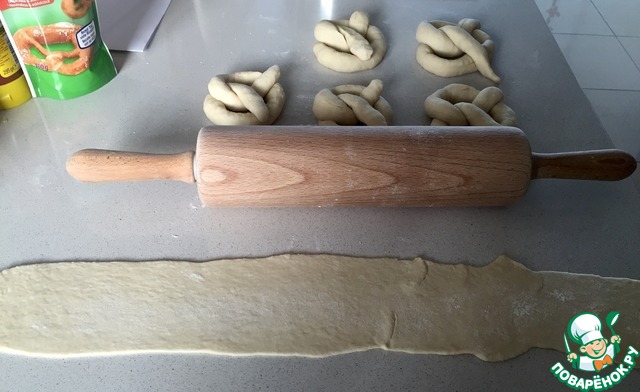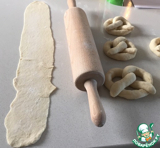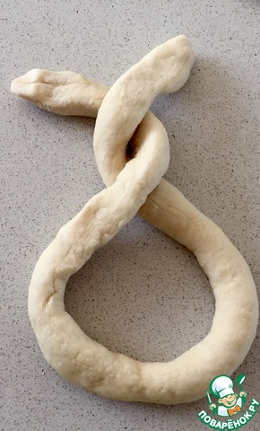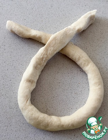 Каждый кусочек превратите в " колбаску см по 40... И начинаем делать крендель...