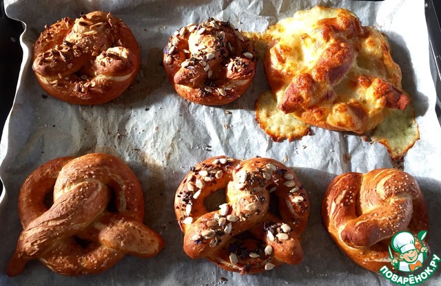 | Представляю вам потрясающий кренделёк. Бретзель, как его называют в Швейцарии. Вариаций на тему-миллион!! С начинкой и без. С посыпкой или "классический"- только с солью. Приглашаю вас к столу!!! Детей зовите. Они оценят! |