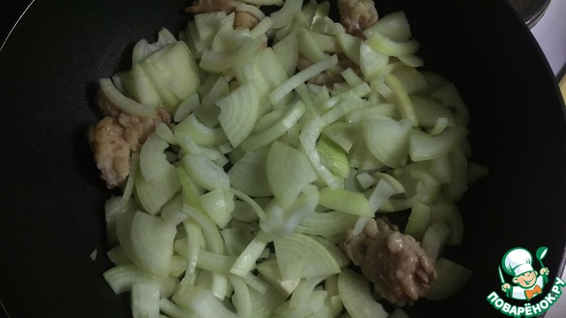 Репчатый лук мелко порубить и обжарить на бараньем жире