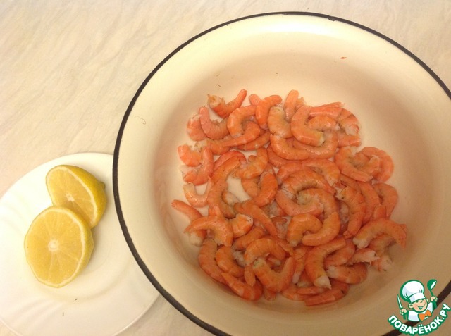 Креветки разморозить, очистить, так сказать, частично: оторвать голову, лапки. Хвостик можно оторвать, а можно и оставить - с ним красивее))) Но я в этот раз убрала. Панцырь оставить на месте!