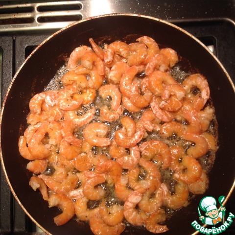 Сначала креветки отдают влагу и не особо жарятся, но...