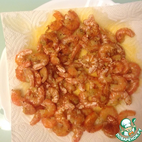 Затем выложить креветки на бумажное полотенце, чтобы стек лишний жир, а уж затем...