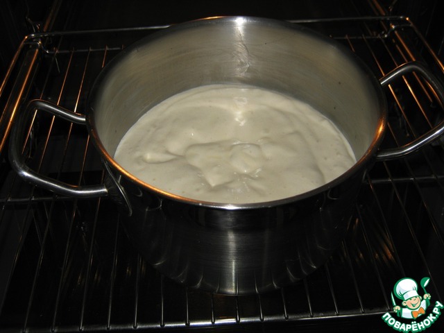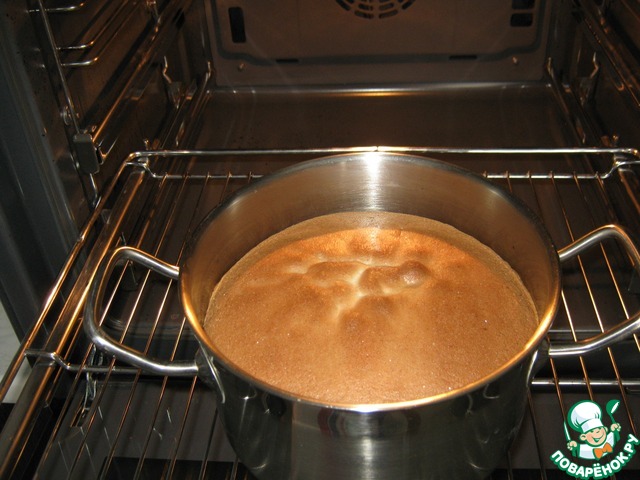 Готовое тесто выложить в форму (у меня кастрюля). На дно положить пергамент, стенки смазать слив. маслом. Выпекать при 180 С около 40 мин до сухой спички.