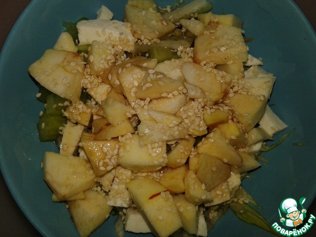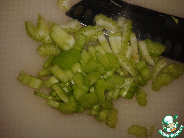 Стебель Сельдерея кубиками, яблоко треугольниками