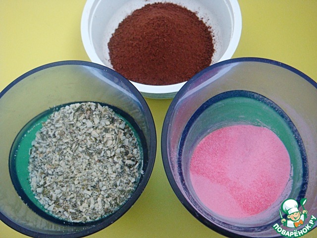 Первоначально подготовить обсыпки для трюфелей. Вы можете использовать для этого любые орехи, семечки, какао, сухое молоко, какао, кэроб, кокосовую стружку и т. д. Я использовала какао, измельченные в блендере тыквенные семечки и сублимированную малину.