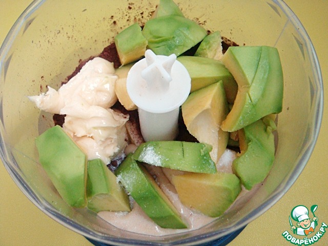 Кунжутную пасту, какао-порошок, мед, мякоть авокадо и ванилин соединить в блендере.