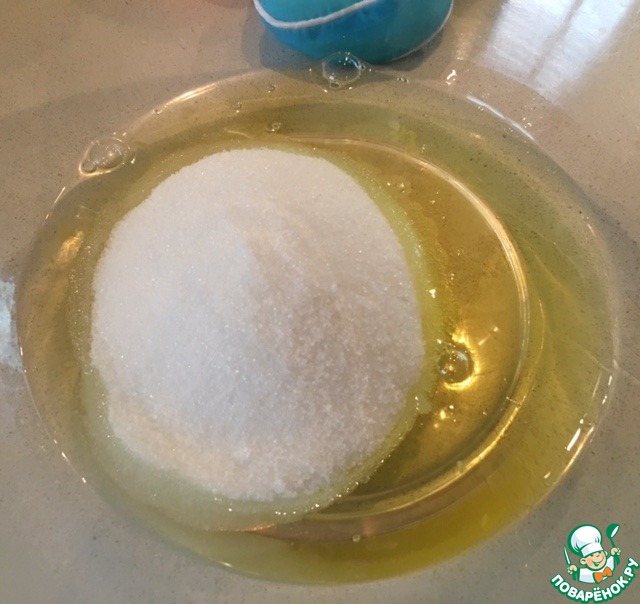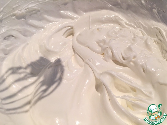 Белки взбейте с сахаром. Добавьте 100 гр сахара.