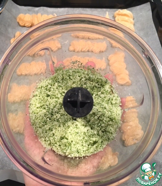 Переложите в кондитерский мешок и отсадите на пекарскую бумагу. У меня получилось 2 противня.