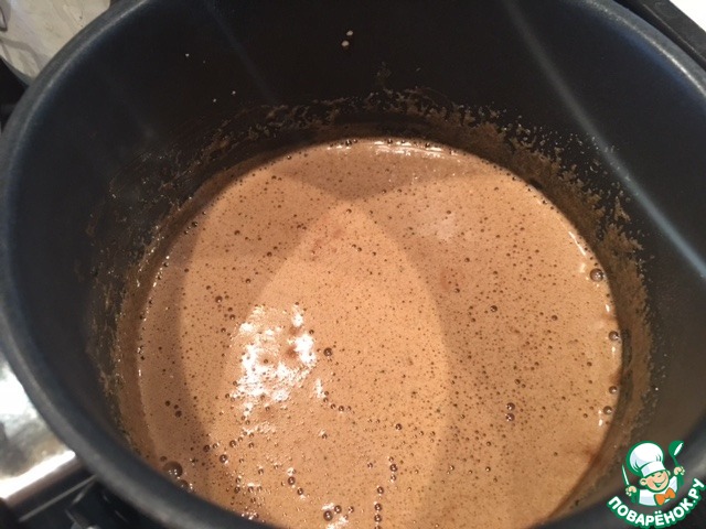 Уварите на водяной бане, помешивая венчиком. Получится тягучий кофейно-шоколадно-мя тный ' крем'.