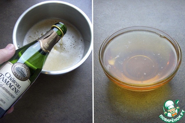 Шампанское смешиваем с растворенным желатином. Ставим в холодильник до его застывания примерно на 2 часа.