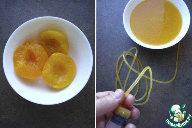 При помощи шприца вводим в трубку от капельницы персиковое пюре.