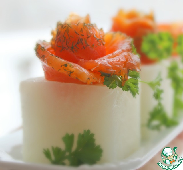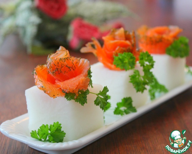 | Легкая, пикантная, красивая и очень быстрая в приготовлении - я уверена, что эта закуска придется по вкусу многим! Минимум времени и максимум результата - это то что нужно при нашем сумасшедшем ритме жизни. Прекрасная половина эти розы оценит по достоинству! |