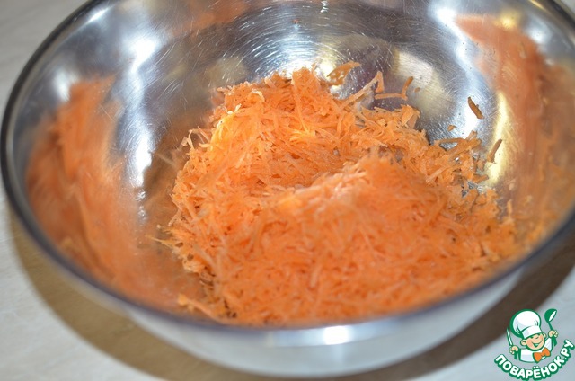 Соединить все ингредиенты для морковных оладьей, хорошо перерешать.