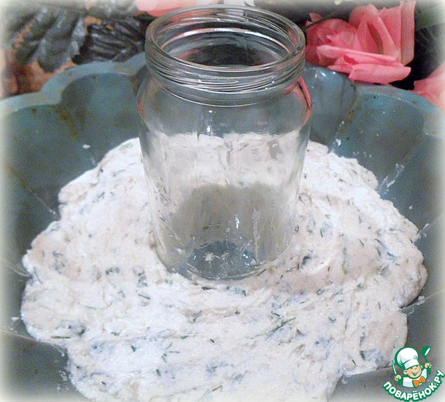 Через 2 часа достать сырную массу из морозилки, аккуратно вынуть из середины банку, и заполнить образовавшееся отверстие сырной массой с авокадо.
