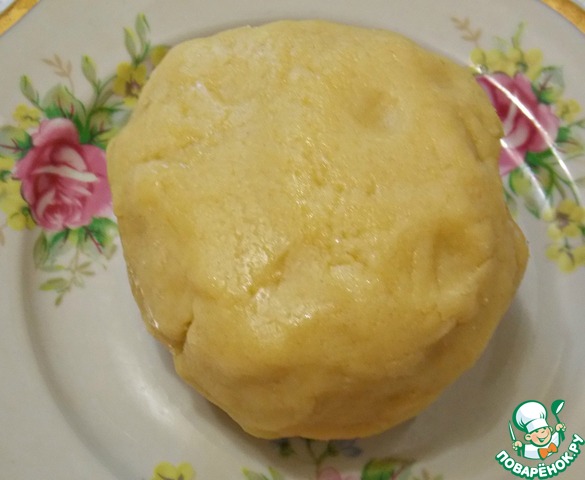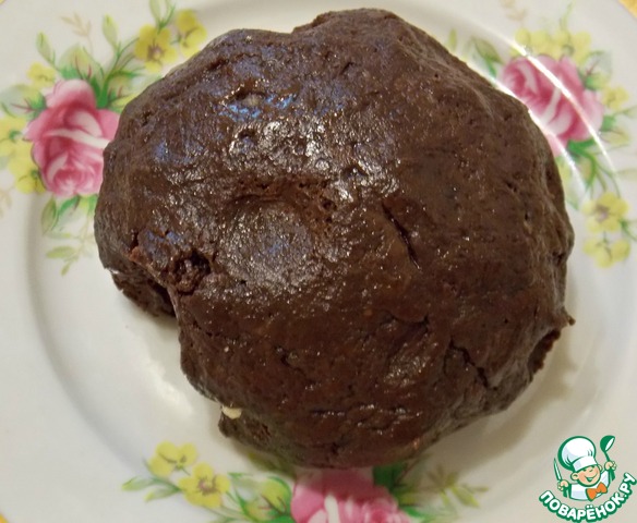 Разделить на две части. Одну оставить без изменения, просто скатав в шар. В другую положить сметану и какао. Замесить до однородной массы и скатать в шар. Убрать в холод на один час.