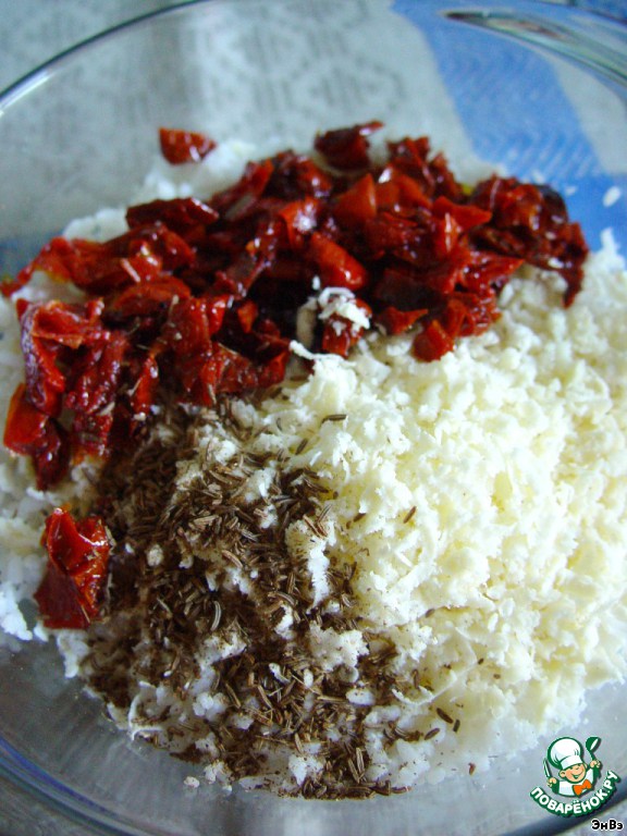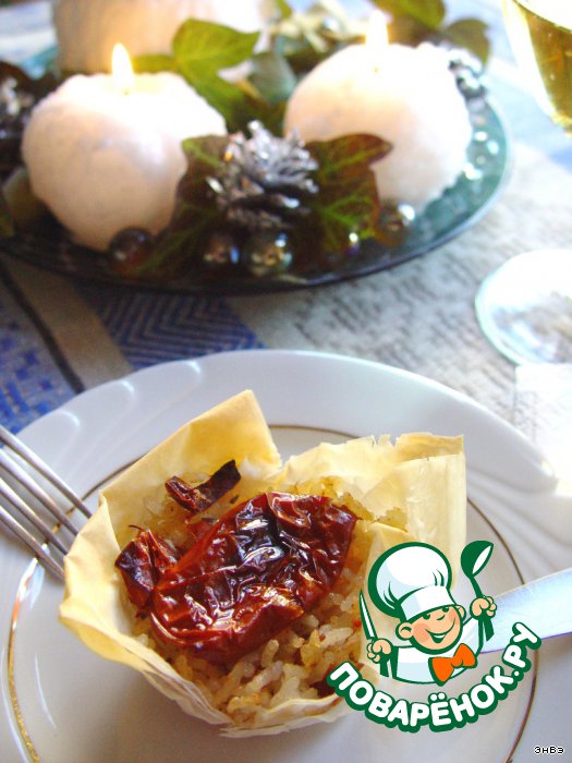 Корзиночки из теста фило с рисом, сыром и вялеными помидорами