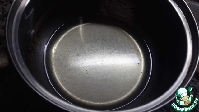 В кастрюле смешать сахар и воду, варить помешивая до полного растворения сахара, варим ещё 1-2 минуты.