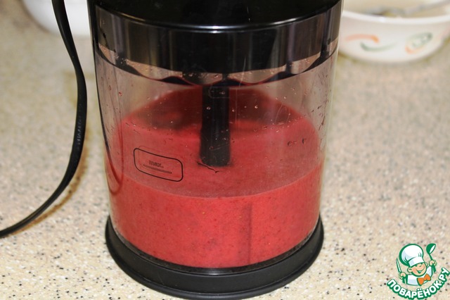 Клубнику разморозила и взбила блендером. Несколько ягод оставила для украшения.