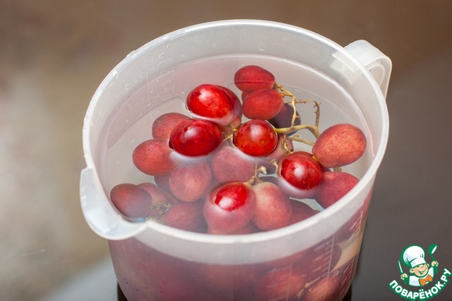 Виноград заливаем водой и оставляем минут на 10, затем хорошо моем.