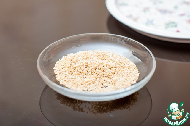 Кунжут поджариваем на сухой сковороде до золотистого цвета.