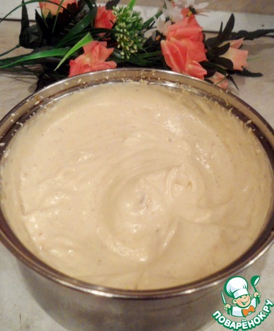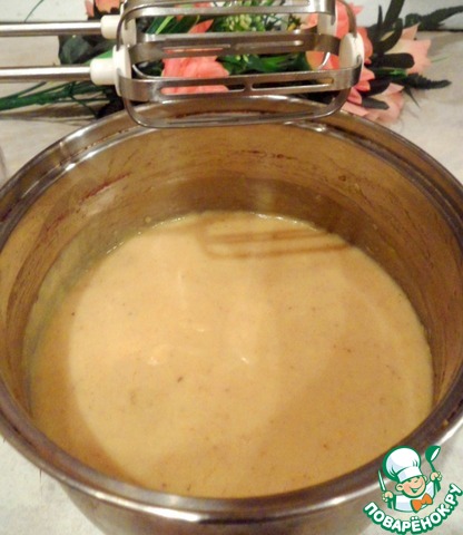 Взбить миксером массу до увеличения в 3 раза. Для этого надо взбивать не менее 20 минут. Получается воздушная, пушистая масса с пористой структурой.