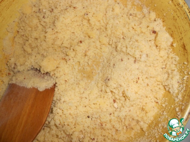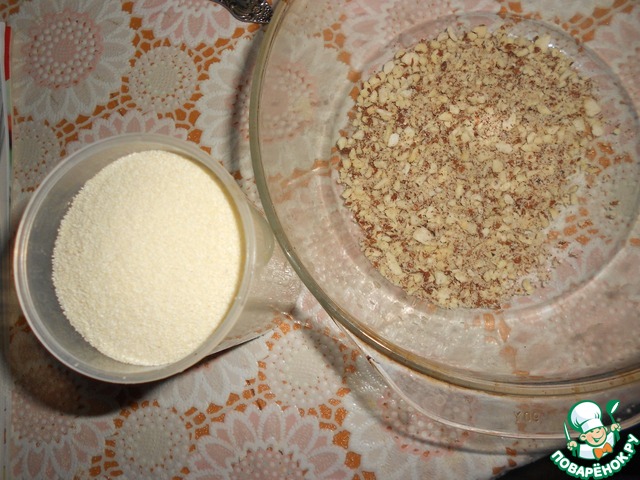 Миндаль измельчить в блендере. Подготовить манную крупу. Соедините манную крупу с орехами.