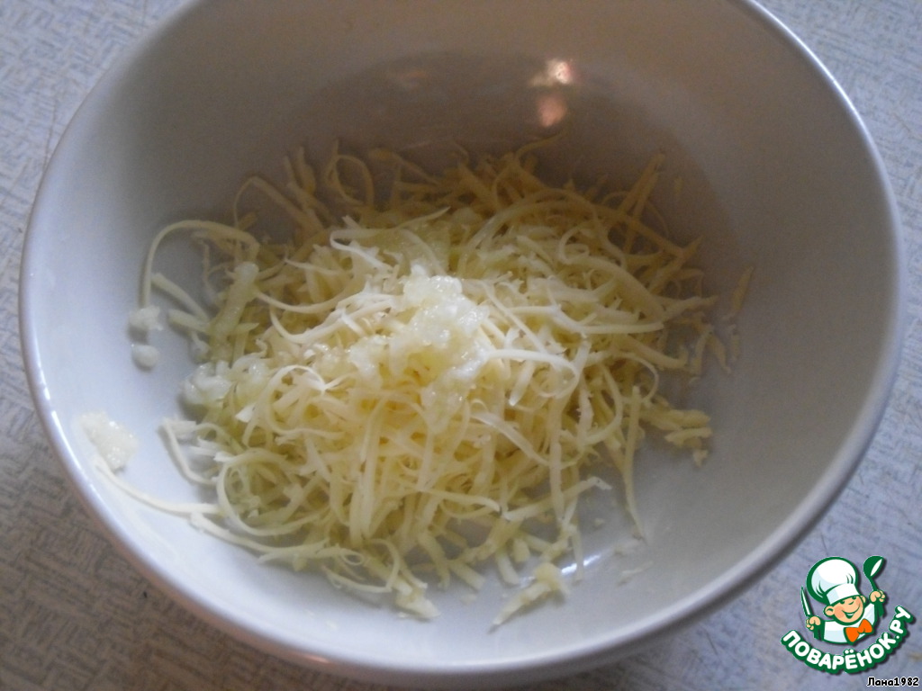 Выложить на противень и поставить в духовку запекаться, пока не расплавится сыр.