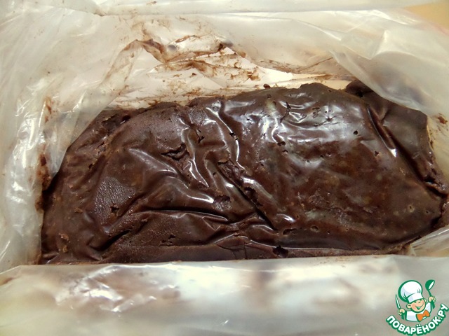Вынимаем из пакета основную шоколадную массу и переносим прямо на грильяж.