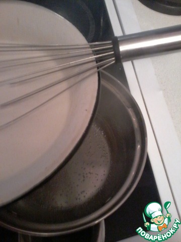 Снова ставим на огонь и добавляем заранее подготовленный желатин. Когда он растворится, вводим сметану и смешиваем.