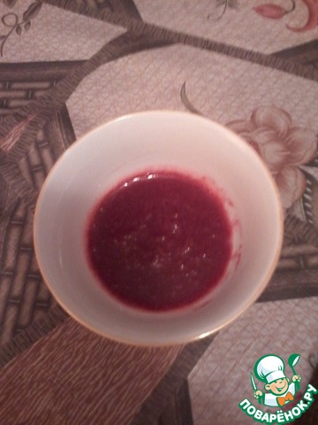 Мне захотелось добавить кислинки и я приготовила к десерту вишневый соус. Для него измельчила блендером вишню, добавила сахар и поставила вариться. Затем, когда вишня покипела пару минут, пропустила её через сито + крахмал и все перемешала.