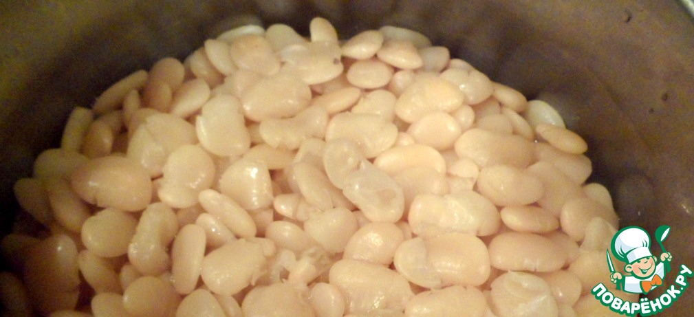 Отварить фасоль Бланш ТМ «Мистраль» в 3 стаканах воды в течение 2 часов до полного разваривания.