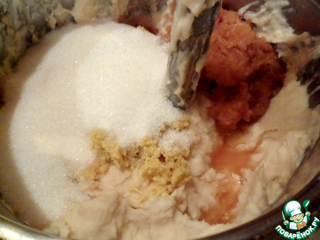 Добавить сахар, растительное масло, цедру лимона, натертое яблоко - перемешать.