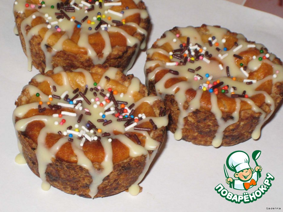 | Тесто довольно обычное, творожно-овсяное, я такое очень люблю, а для такого рода выпечки оно подходит просто идеально, пропекается, не отмокает и остается хрустящим пока вы его не съедите )) Еще важный для меня момент, не надо предварительно ничего выпекать, запекаем все вместе и тесто и начинку. Акцент делаю на начинке, из топленого йогурта, которая отличается нежнейшей, бархатной структурой и неповторимым ароматом. Йогурт и крем из него делаем сами из топленого молока, на приготовление которого нужно много время около 2 -х суток, а вот труда это займет ровно столько, как если бы вы решили закинуть стирку в машинку ))) На конкурс "Королева фуршета". |
