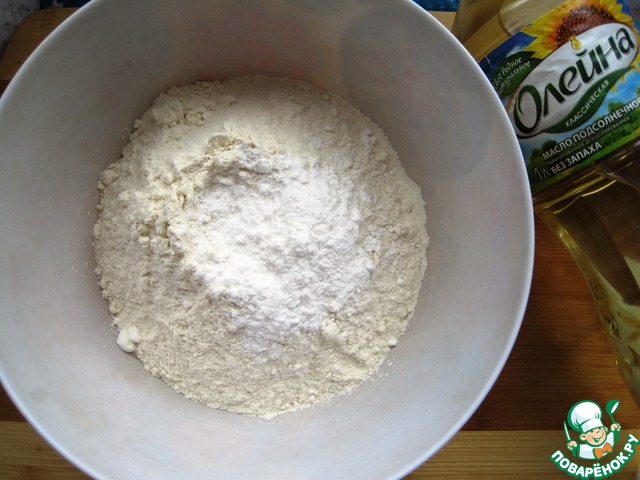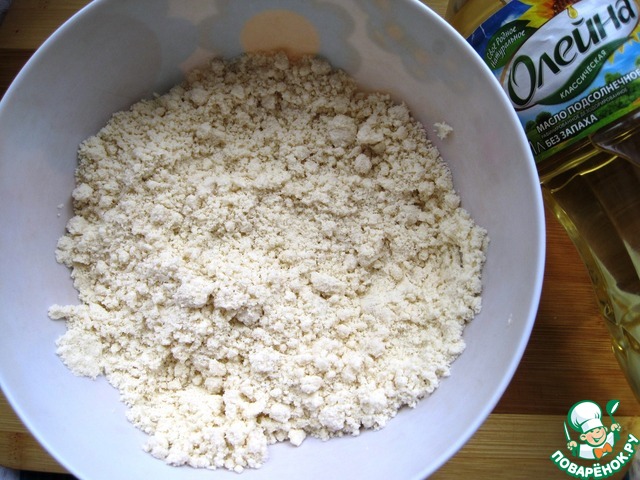 Начнём замешивать тесто таким образом, что бы получилась крошка. (Как бы втирая масло в муку).