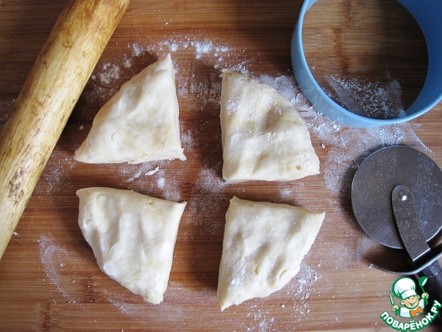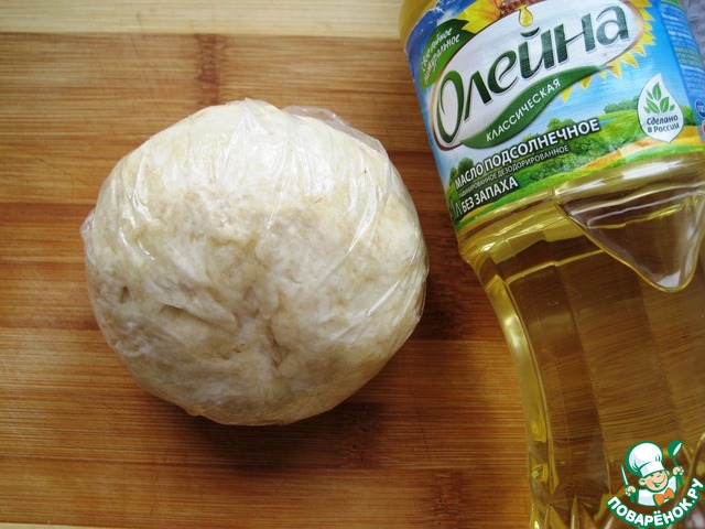 Охлаждённое тесто делим на 4 части. Одну часть оставляем для дальнейшей работы, остальное тесто накрываем и убираем в холодильник.