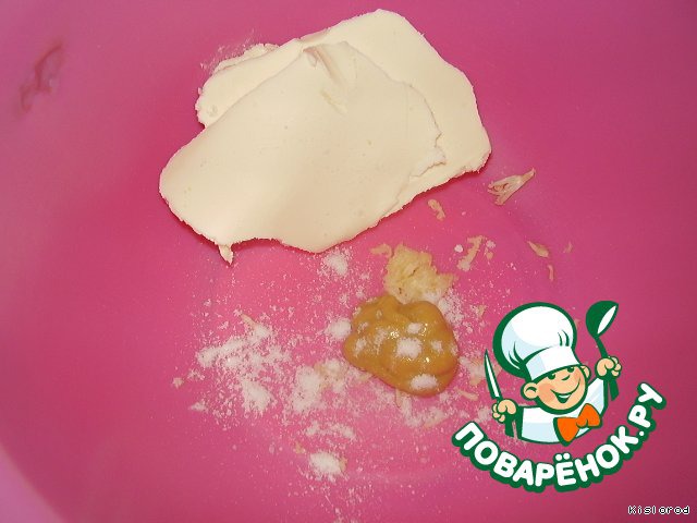 взять мягкое сливочное масло, хрен, горчицу, соль и натертый чеснок(у меня хрена не было и я взяла горчицу с хреном)