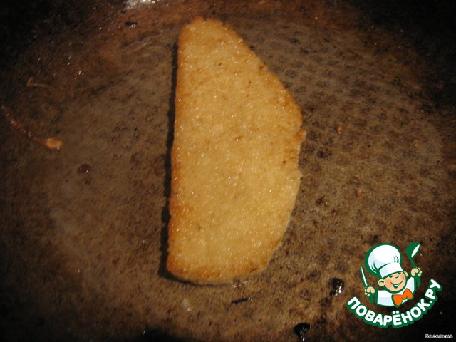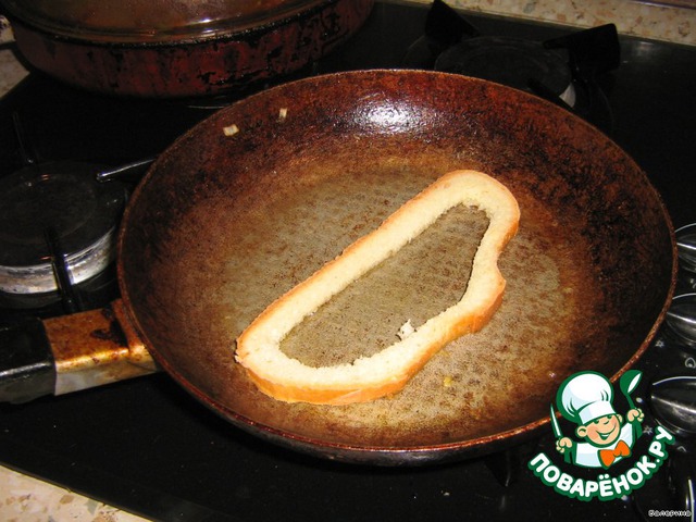 Теперь берем мякиш и обжариваем его на сковородке совсем чуток, чтобы только прихватился с двух сторон.